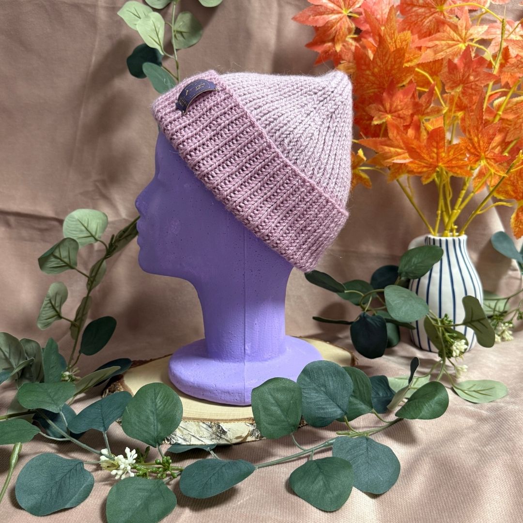 Rozmiar uniwersalny — obwód głowy 54–58 cm. Czapka przewijana z charakterystycznym fasone, który pozwala na elastyczne dopasowanie. Zaprojektowana i wykonana przeze mnie w Polsce z myślą o komforcie.