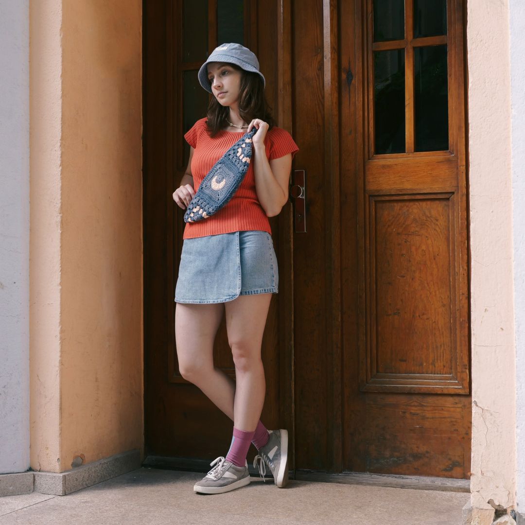 Ta wyjątkowa nerka została wykonana ręcznie z certyfikowanej przędzy 100% bawełnianej, co gwarantuje naturalność, trwałość i komfort użytkowania. Podszewka powstała z ekologicznej tkaniny z drugiego obiegu, a metalowe elementy, zamki oraz taśmy są produkcji polskiej, co podkreśla wysoką jakość i dbałość o detale.